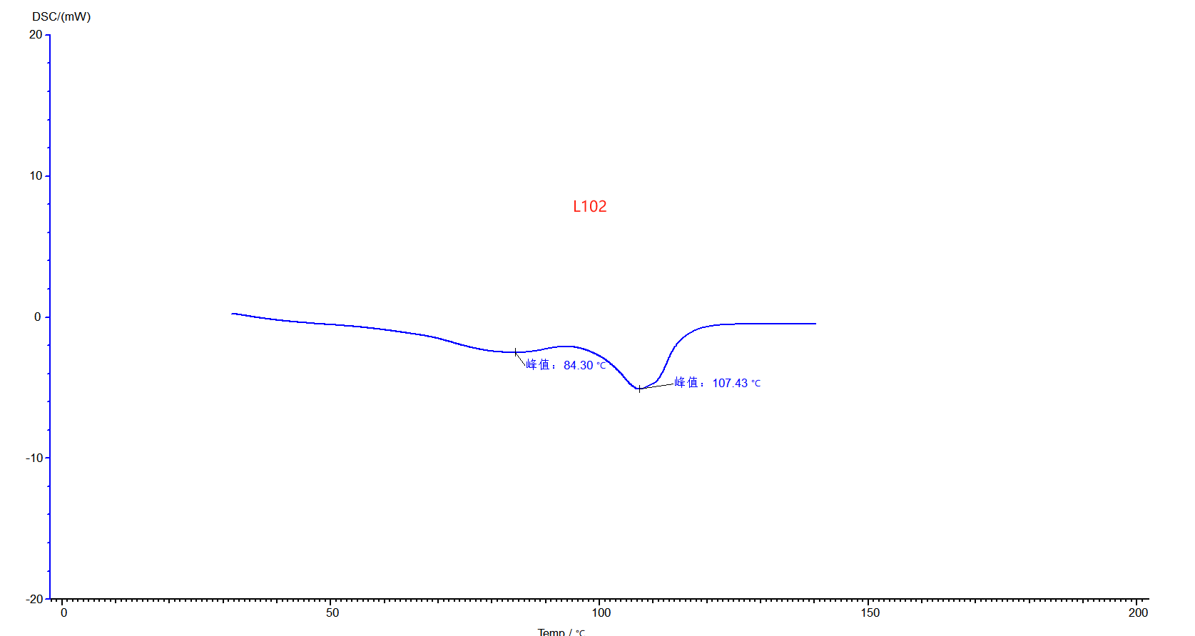 從 DSC 的測試結(jié)果顯示,樣品聚乙烯蠟 L102 的峰值溫度是84.3℃、107.43℃。