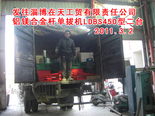 發(fā)往山東遠(yuǎn)旺金屬科技有限公司拔絲機(jī)BS450型二臺(tái)
