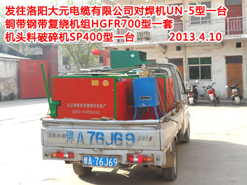 發(fā)往德陽(yáng)旌特線纜有限公司銅帶鋼帶復(fù)繞機(jī)組HGFR700型一套 鋼帶點(diǎn)焊機(jī)GDH30型一臺(tái)