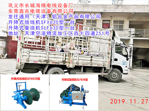 發(fā)往河南華東電纜股份有限公司 升降式復(fù)繞機(jī)SLF630型2臺 升降式放線機(jī)SFX630型2臺